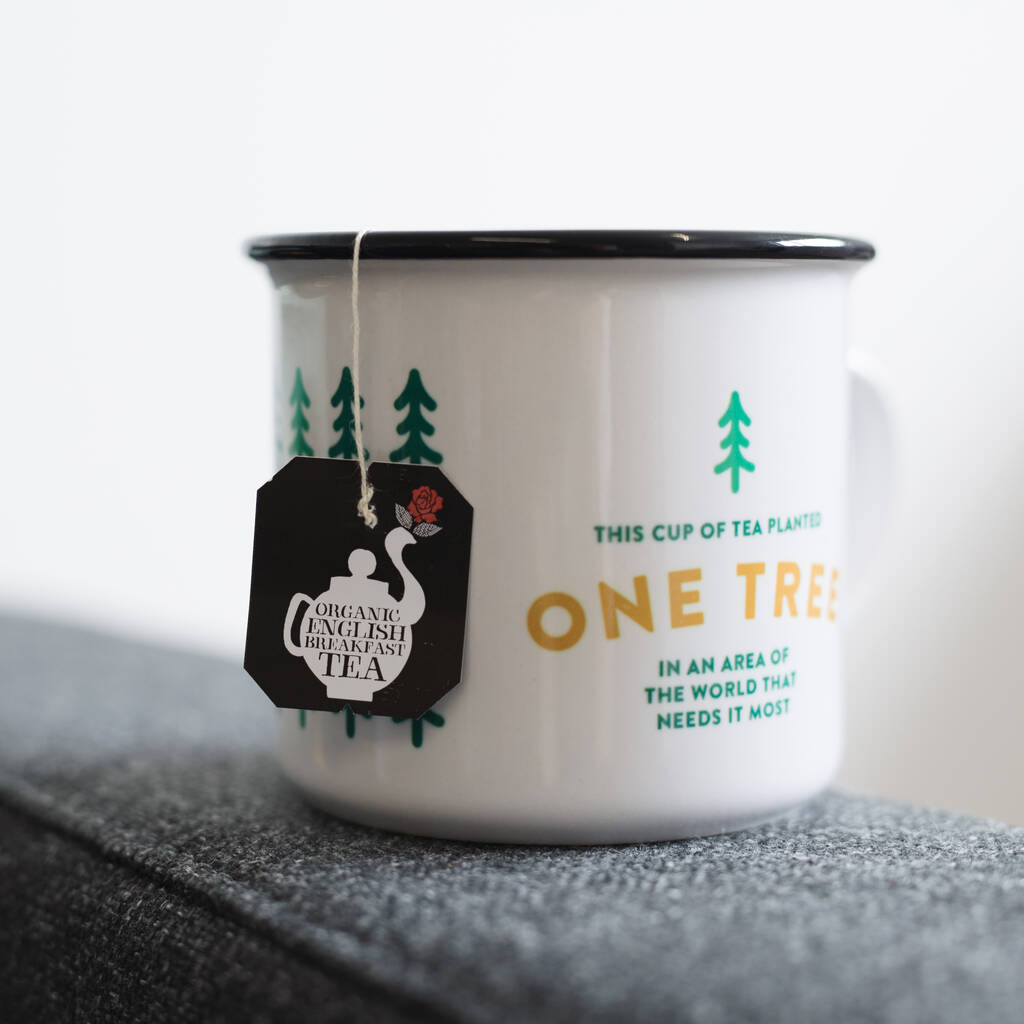 'This Cup Of Tea Planted One Tree' Ceramic Mug, complete with a personalised message and an organic tea bag to delight an eco-conscious loved one.