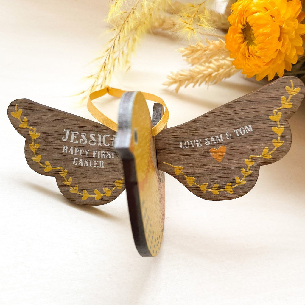 Personalise with the name of the baby to appear on one wing and the names of who the gift is from on the second.