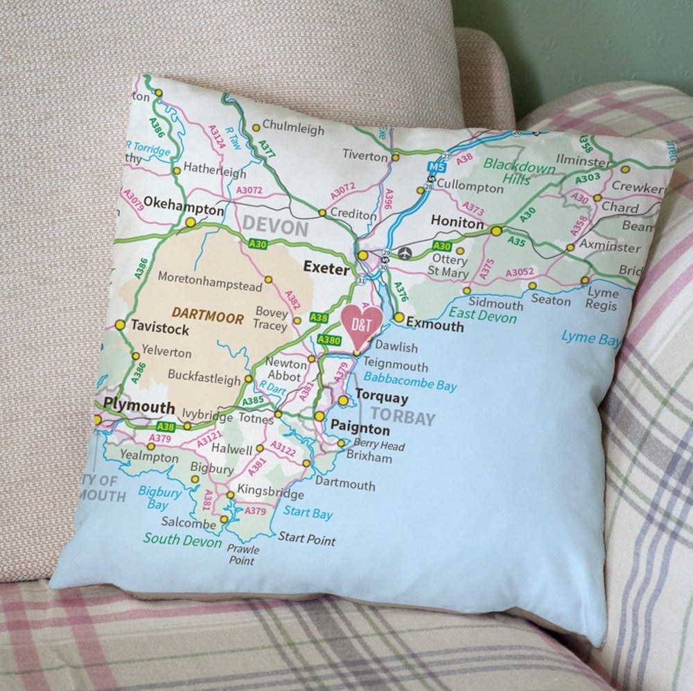 These cushions also make an excellent birthday gift displaying the surrounding area the recipient was born. Alternatively you can give this cushion as a unique engagement present showing the area where the engagement took place, or a wedding present displaying the area of the wedding venue for the newlyweds to display in their home.