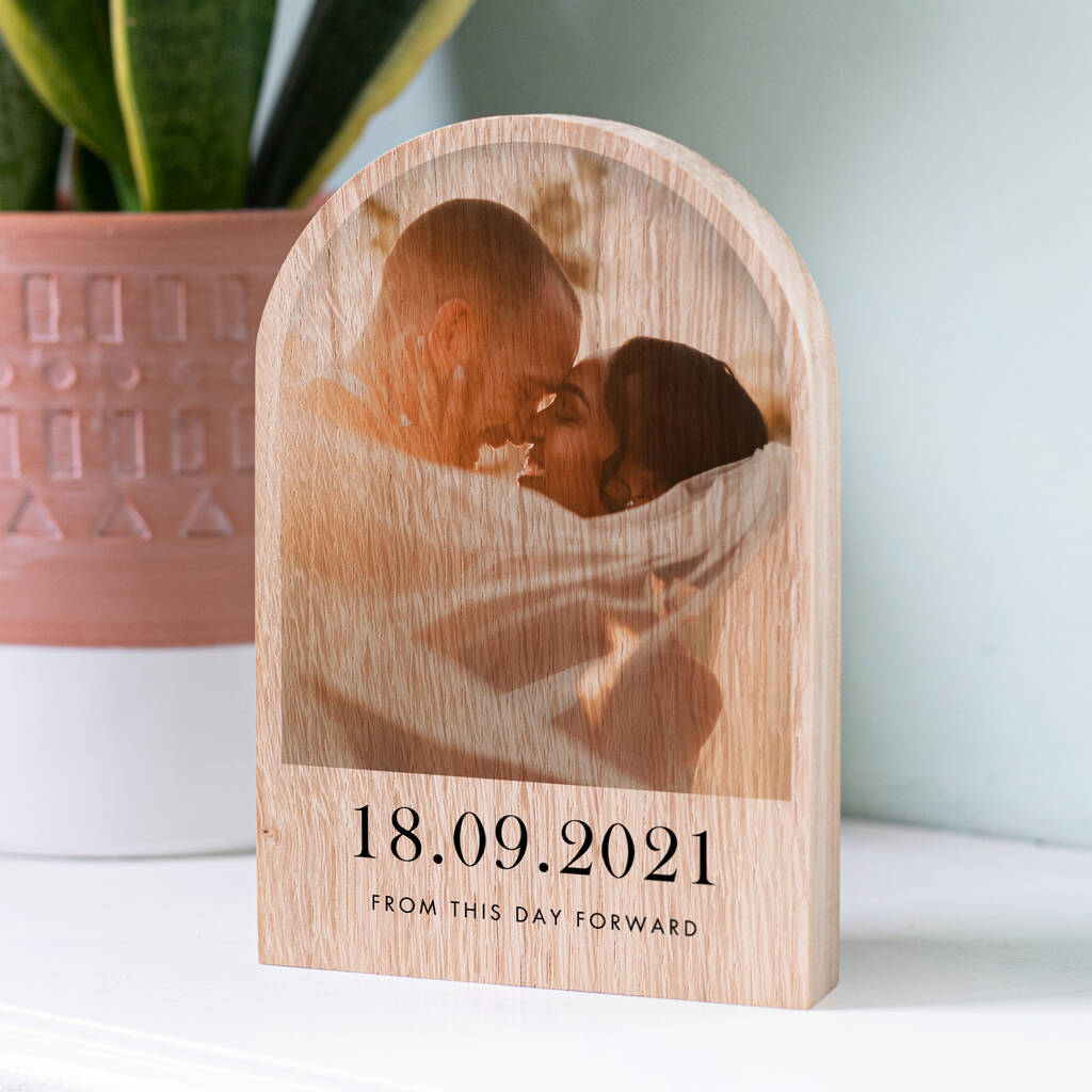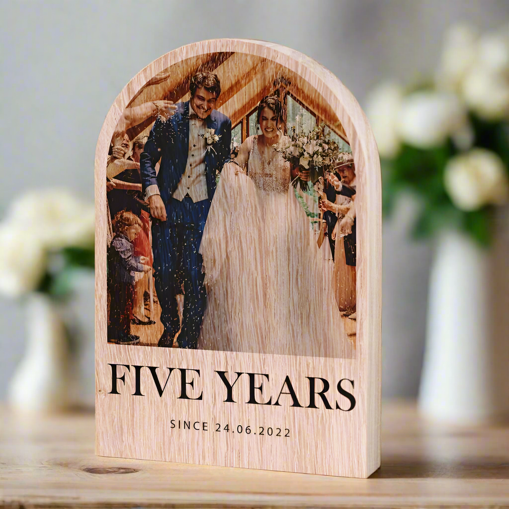 If you are looking for the traditional fifth anniversary gift of wood our Solid Oak Wooden Arch Photo Block would make the perfect gift to mark this special life landmark. Maybe you have a favourite photo from your wedding day or perhaps you have a photo of the happy couple which you would love to gift them for their anniversary.