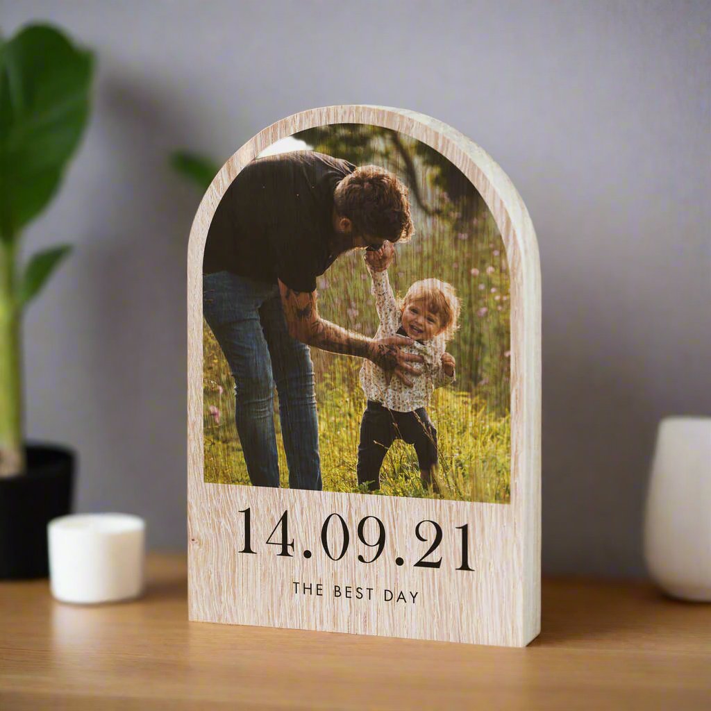 Personalised Solid Oak Wooden Arch Photo Block