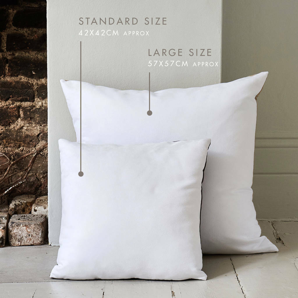 Our cushion covers have a washable, colourfast and wear resistant finish, due to the unique printing technology used to create them, unlike many other personalised cushions available. The design is also printed right to the edge of the fabric, giving this cushion a very high quality finish. Each is then sewn with love, including a concealed zip so you can remove the cover if you need to.