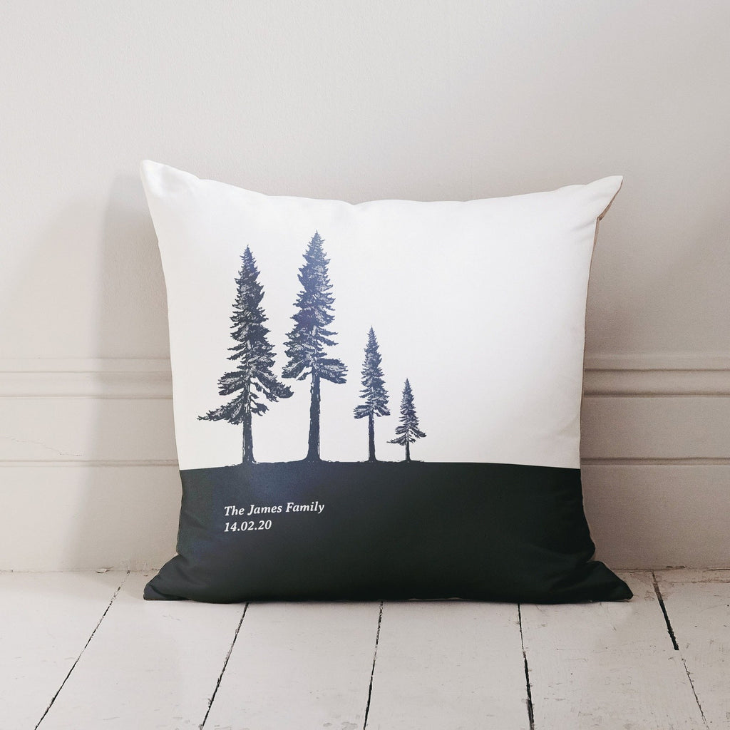 Celebrate a loving family with this stylish family tree cushion - showing a family as trees standing tall beside each other. A modern take on a 'family tree', this cushion is a great way to symbolise a family that's growing strong. A perfect gift for new parents to celebrate a new arrival, or for a large family who's forest is complete.