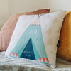 Child's Personalised Tee Pee Cushion, personalised with a child's name.