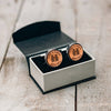 Silver plated with beautiful engraved cherry wood, these personalised wooden cufflinks make a perfect gift for the one you love.