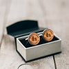 Your personalised cufflinks are made from engraved cherry wood in a silver plated casing. We recommend cleaning them with a silver cloth or silver polish and a clean soft cloth to keep them looking at their best.