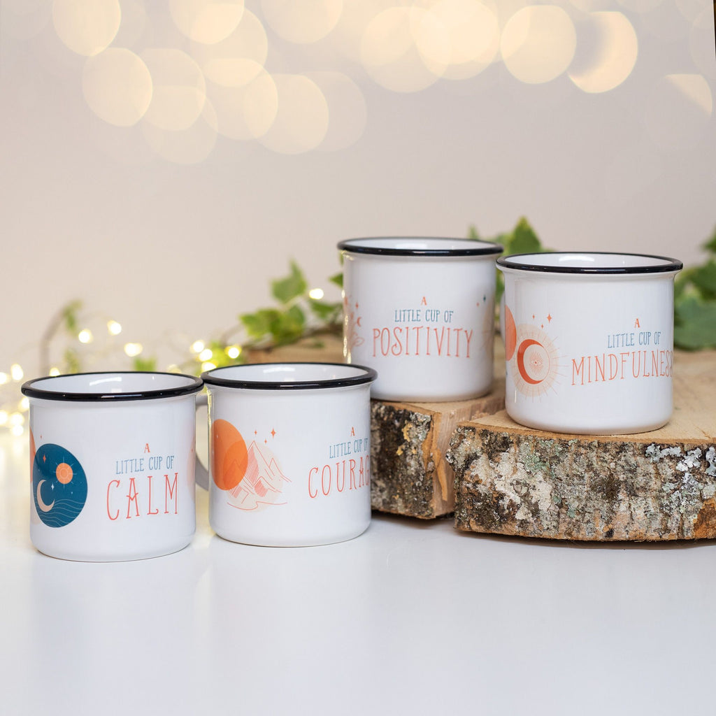 A 'Little Cup of Mindfulness' personalised ceramic mug to encourage people to have a sit down and a mindful moment of peace.