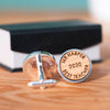 Your personalised cufflinks are made from engraved cherry wood in a silver-plated casing. We recommend cleaning them with a silver cloth or silver polish and a clean soft cloth to keep them looking at their best. Each box contains a silver storage strip, which is 'anti-tarnish impregnated' to stop your cufflinks discolouring.