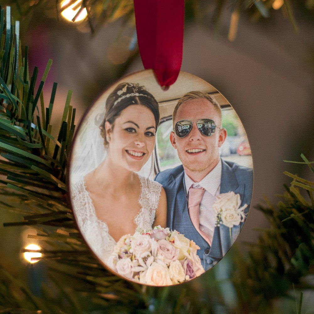 These wooden photo baubles are a perfect way to celebrate a special year where you either got engaged, married or became a parent.