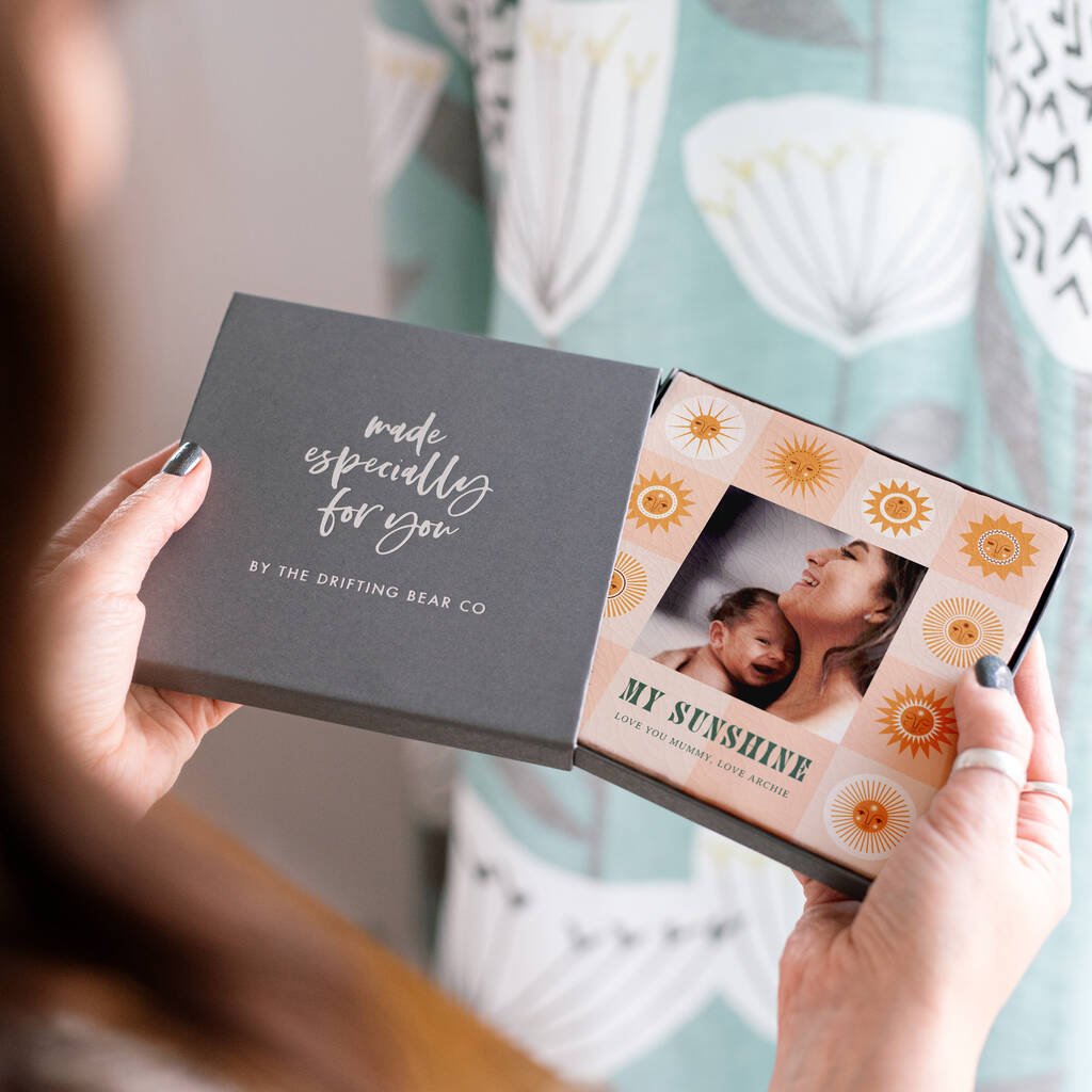 A beautiful Personalised My Sunshine Tile gift for her, showing a favourite photo surrounded by beautiful sunshines.