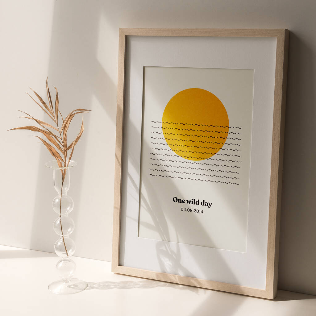 A personalised graphic illustration, representing the sun setting after a perfect day.