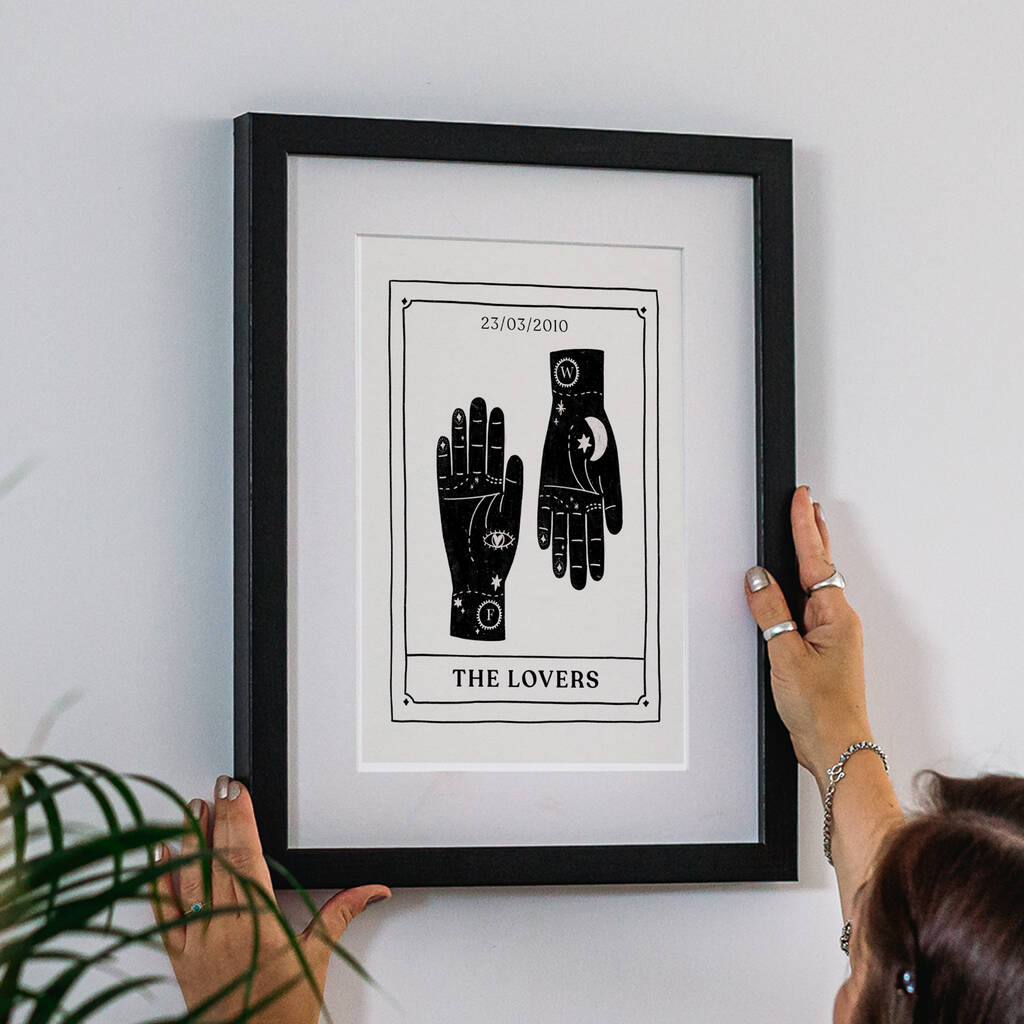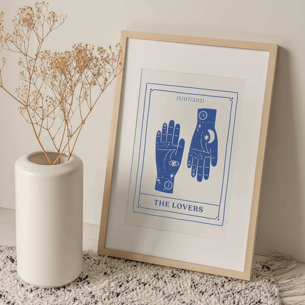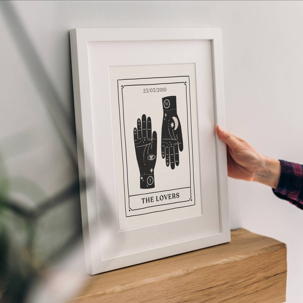 A Couple's Tarot Card Print, personalised with initials and a date.
