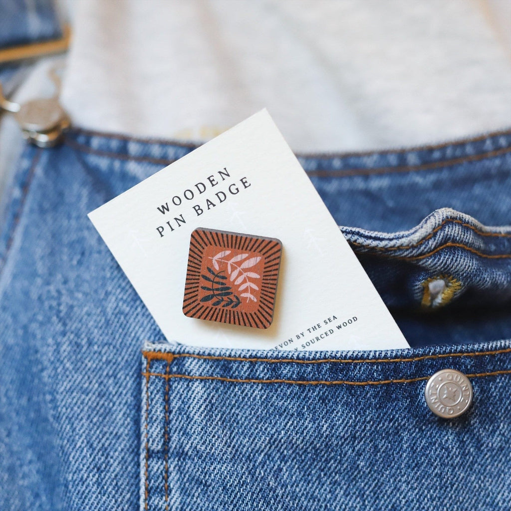 Made lovingly in our family run studio. This product is not only 100% recyclable but wooden pins also use up to 24% less energy to produce than their enamel equivalent. So if the environment is top of the list for you please rest assured this is ticking that box.