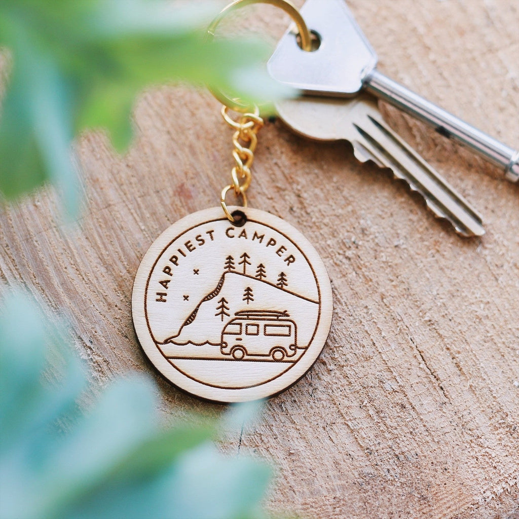 Embark on your next adventure with our Happiest Camper Wooden Keyring by your side – a rugged and stylish companion that symbolizes your love for exploration and the great outdoors. Crafted with care and precision, this keyring is more than just a practical accessory; it's a token of your adventurous spirit and a reminder to seek new horizons.
