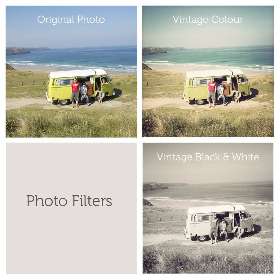 You can also choose from either a vintage colour filter, vintage black and white filter, or we can leave the photos as you have provided.