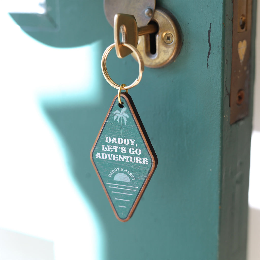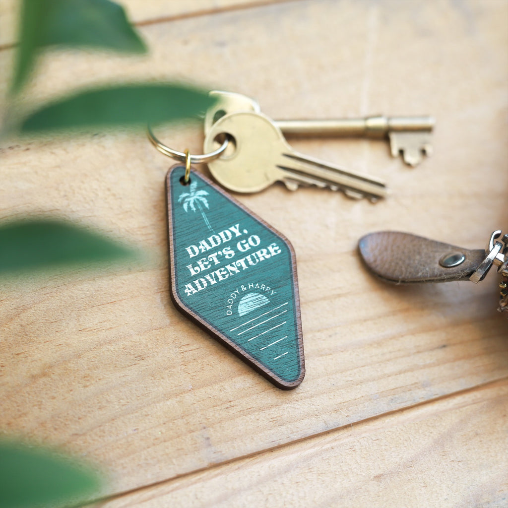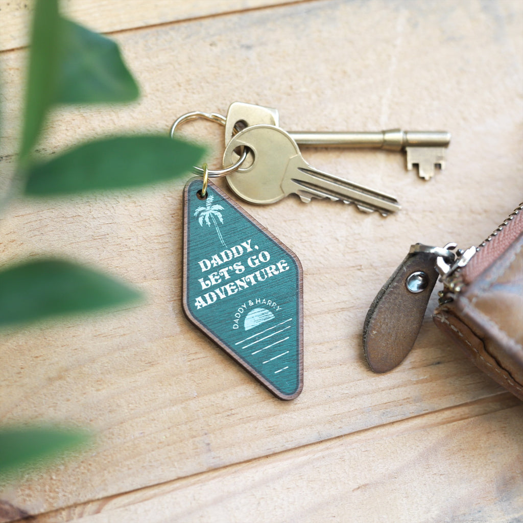 Personalised 'Let's Go Adventure' Wooden Keyring